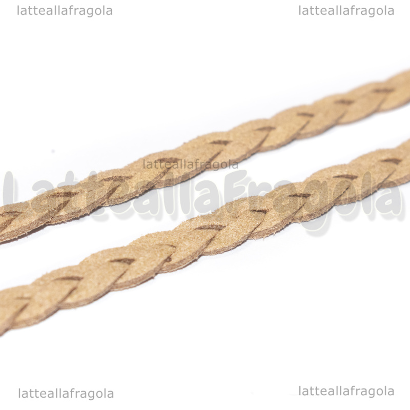 1 Metro Cordino Similpelle intrecciata scamosciata Tortora 7x3mm