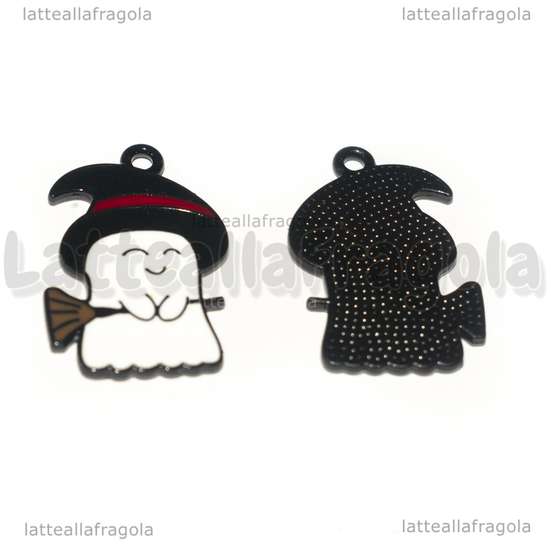 Charm Fantasma con cappello e scopa in metallo smaltato 22x15mm