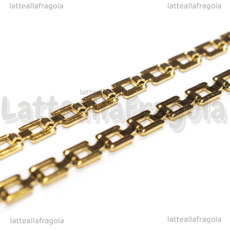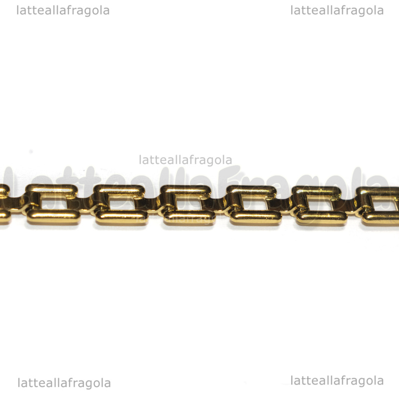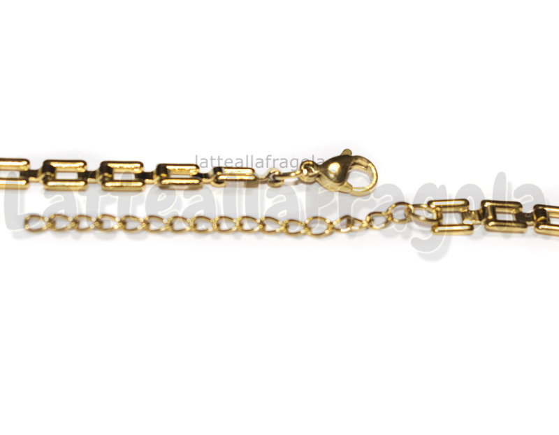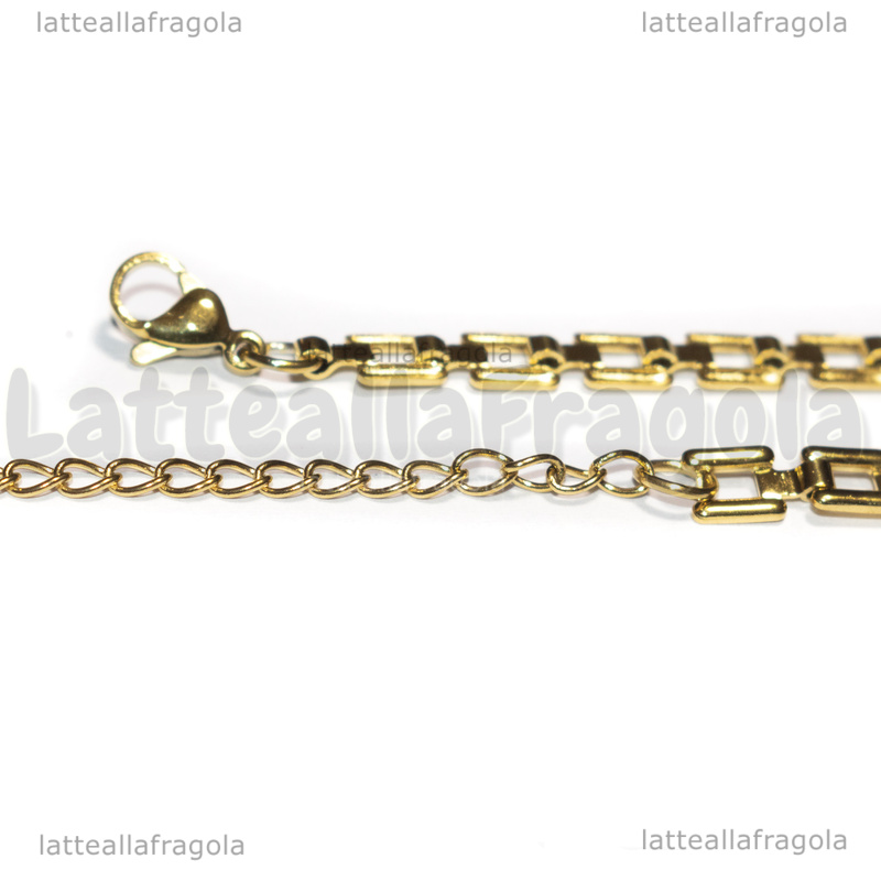 Bracciale Maglia rettangoli in Acciaio Inox Dorato 18cm