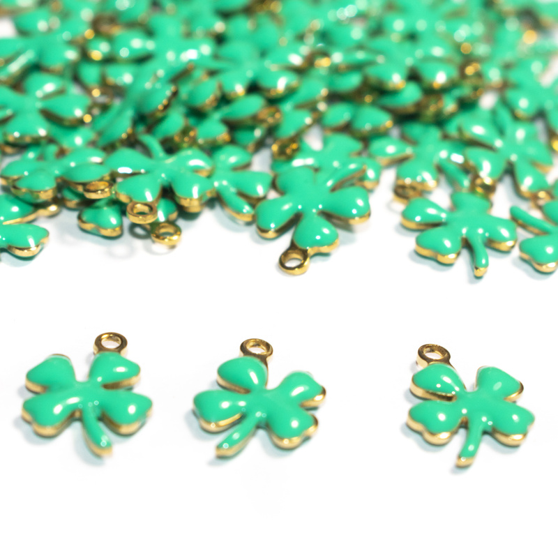 3 Charms Quadrifoglio in Acciaio Inox dorato smaltato tiffany 13x9mm