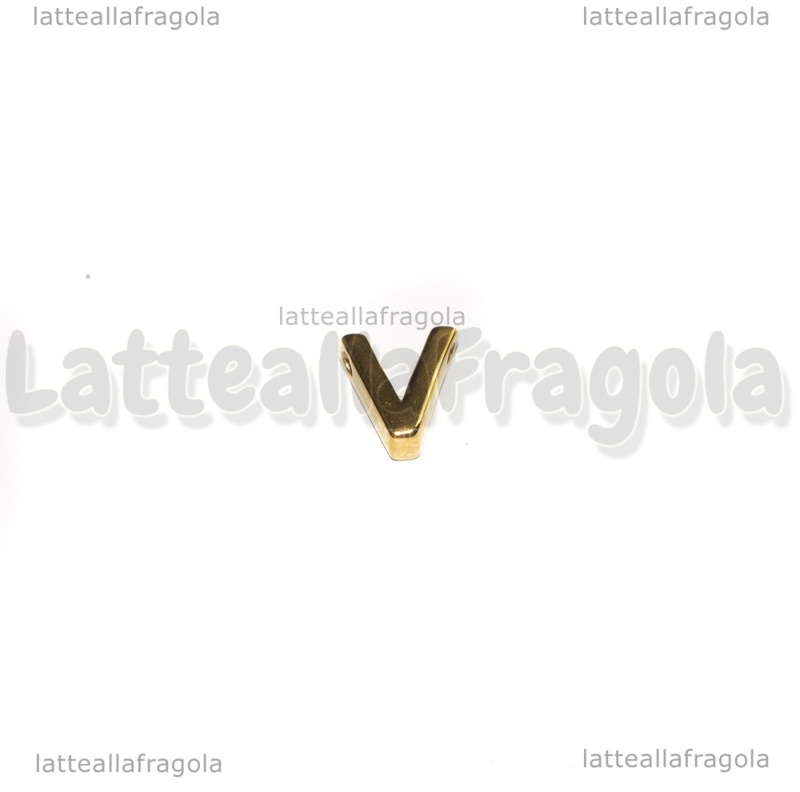 Spaziatore Lettera V in Acciaio Inox dorato placcato Oro 18K 9.5x8.5x3mm