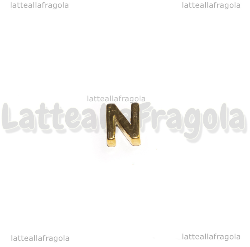 Spaziatore Lettera N in Acciaio Inox dorato placcato Oro 18K 9.5x7.5x3mm