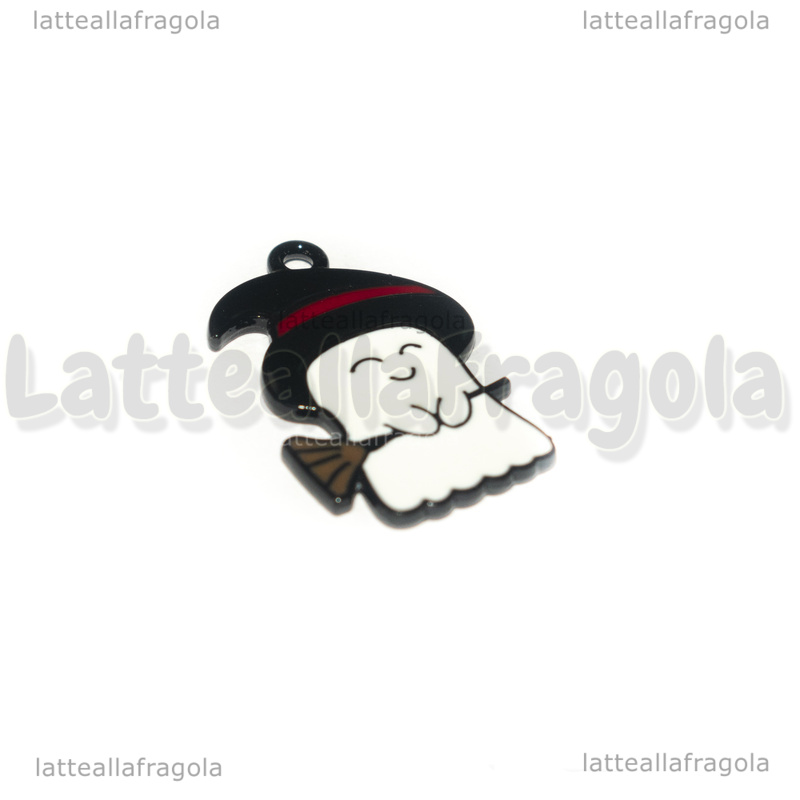 Charm Fantasma con cappello e scopa in metallo smaltato 22x15mm